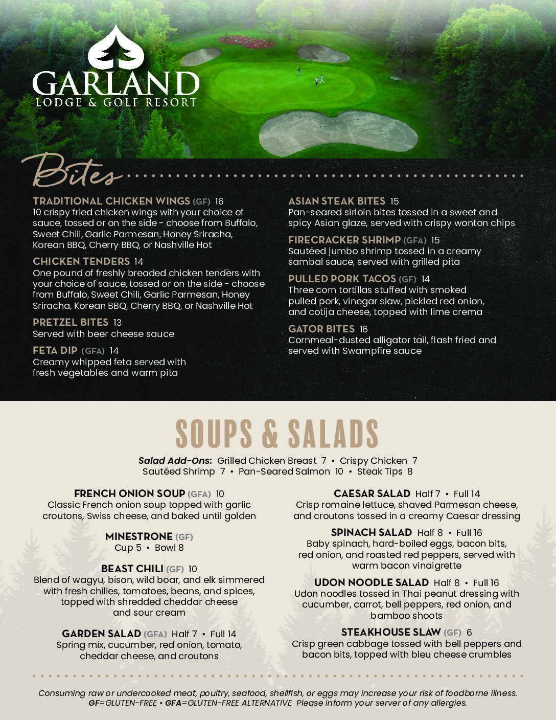 Open for breakfast and dinner during the prime golf season. Garland’s chef utilizes fresh farm seasonal vegetables provided by their local community.
